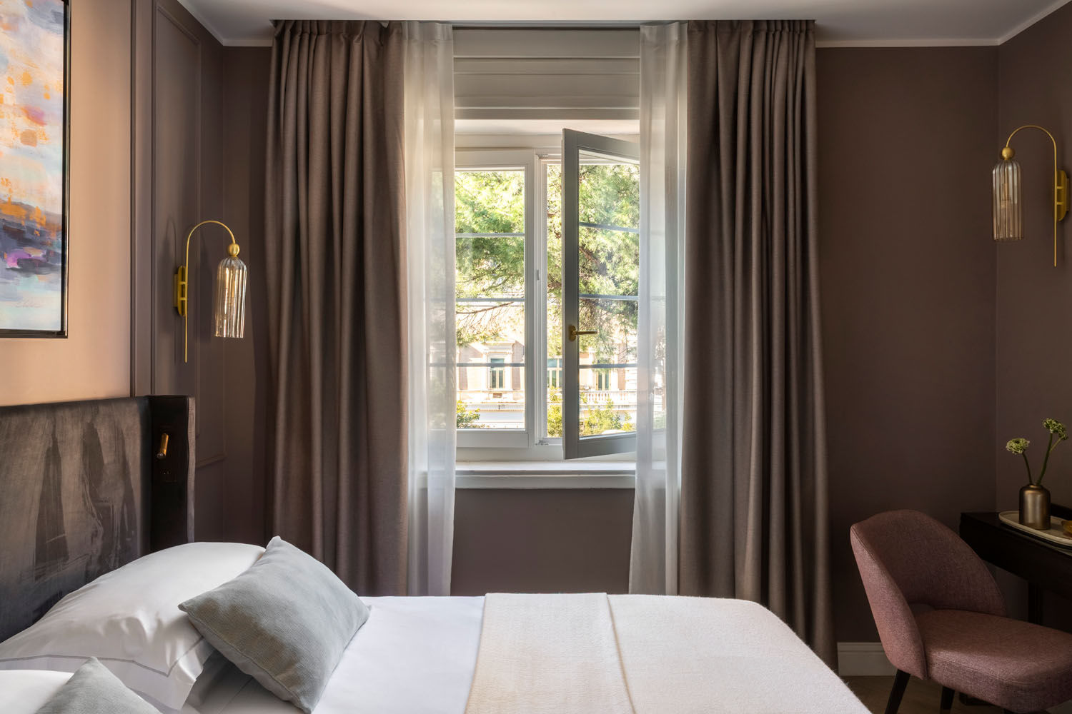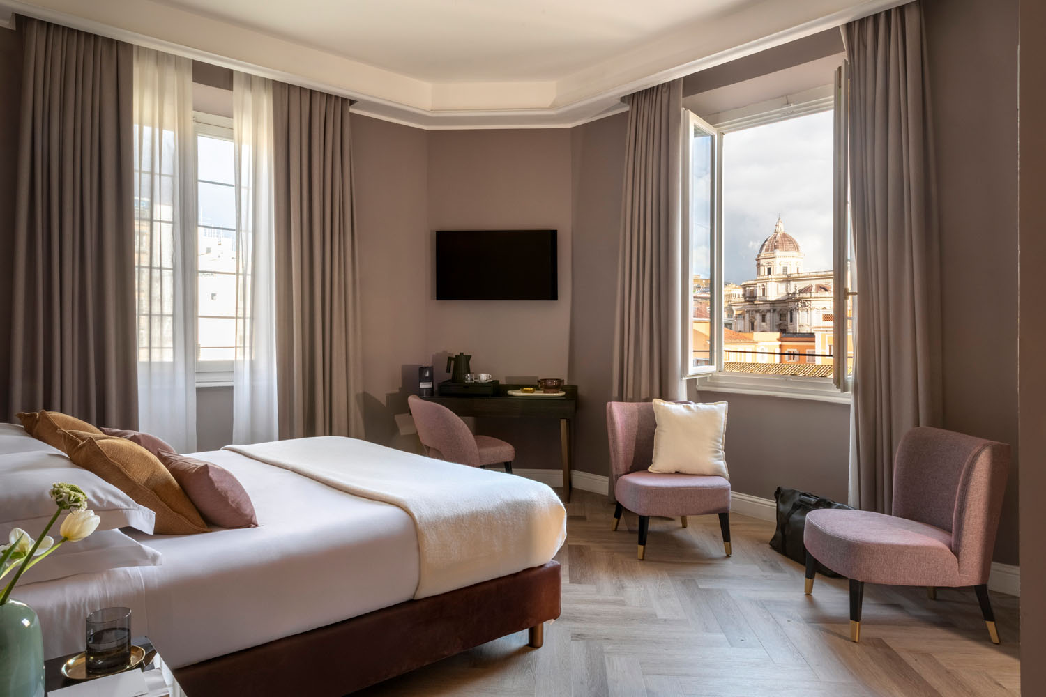 The Hotel Viminale is defined by its ultra-modern design and subtle color palette. Simple in form yet exceptional in detail, every room of this elegant establishment is meticulously crafted. Situated in the heart of the Eternal City, it stands as one of the jewels of BZAR hotels. Explore the rooms, lobby, and stunning outdoor spaces through our photo gallery.